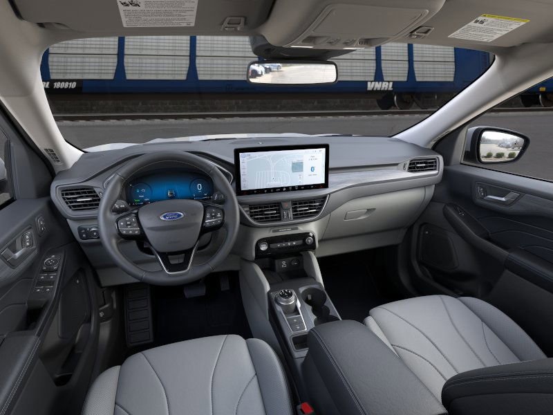 Equipped with Equipment Group 700A, Memory Package, PHEV Premium Package (10-Way Power Driver's Seat, 12.3" Productivity Screen in Instrument Cluster, 360-Degree Camera w/Split View, 6-Way Power Passenger Seat, Auto-Dimming Rear-View Mirror, Front Parking Sensors, HD Radio, Head-Up Display, Heated ActiveX-Trimmed Front Sport Contour Seats, LED Lightbar Headlamps, Perimeter Alarm, Radio: B&O Sound System by Bang & Olufsen, Reverse Brake Assist, Universal Garage Door Opener (UGDO), and Wireless Charging Pad), 2.5L iVCT, 2.91 Axle Ratio, 4-Wheel Disc Brakes, 6 Speakers, ABS brakes, Air Conditioning, Alloy wheels, AM/FM radio: SiriusXM, AM/FM Stereo, Auto High-beam Headlights, Automatic temperature control, Black Roof-Rack Side Rails, Brake assist, Bumpers: body-color, Compass, Delay-off headlights, Driver door bin, Driver vanity mirror, Dual front impact airbags, Dual front side impact airbags, Easy Access Cargo Shade, Electronic Stability Control, Emergency communication system: SYNC 4 911 Assist, Ford App, Four wheel independent suspension, Front anti-roll bar, Front Bucket Seats, Front Center Armrest, Front dual zone A/C, Front fog lights, Front reading lights, Fully automatic headlights, Heated door mirrors, Heated front seats, Heated steering wheel, Heated Vinyl/Cloth Front Sport Contour Bucket Seats, Illuminated entry, Knee airbag, Low tire pressure warning, Navigation system: Connected Navigation, Occupant sensing airbag, Outside temperature display, Overhead airbag, Overhead console, Panic alarm, Panoramic Vista Roof, Passenger door bin, Passenger vanity mirror, Power door mirrors, Power driver seat, Power Liftgate, Power steering, Power windows, Radio data system, Rear anti-roll bar, Rear reading lights, Rear seat center armrest, Rear window defroster, Rear window wiper, Remote keyless entry, Speed control, Speed-sensing steering, Speed-Sensitive Wipers, Split folding rear seat, Spoiler, Steering wheel mounted audio controls, SYNC 4 w/Enhanced Voice Recognition, Telescoping steering wheel, Tilt steering wheel, Traction control, Trip computer, Variably intermittent wipers, and Wheels: 18" Machined-Face Magnetic Aluminum.