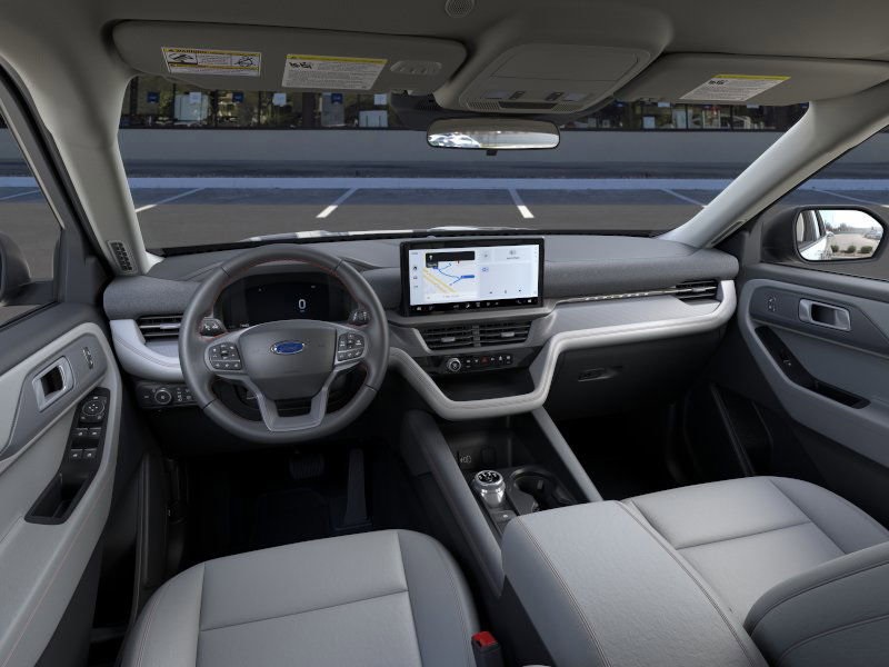 Equipped with Active Comfort Package (Front Fascia, Heated ActiveX Seating Material Captain's Chairs, Heated Steering Wheel, Remote Start System, and Second Row Hvac Controls), Equipment Group 200A Standard Package (8 USB Ports, Active Badging, Active Noise Cancellation, AM/FM Stereo, Black Lower Bodyside Cladding with Chrome Accent, Black Roof-Rack Side Rails, Manual-Folding Sideview Mirrors, Power Liftgate, Vinyl-Wrapped Steering Wheel, and Wheels: 18" Sparkle Silver-Painted Aluminum), 3rd row seats: bench, 4-Wheel Disc Brakes, 6 Speakers, ABS brakes, Air Conditioning, Alloy wheels, AM/FM radio: SiriusXM with 360L, Apple CarPlay/Android Auto, Auto High-beam Headlights, Automatic temperature control, Brake assist, Bumpers: body-color, Compass, Delay-off headlights, Driver door bin, Driver vanity mirror, Dual front impact airbags, Dual front side impact airbags, Electronic Stability Control, Emergency communication system: 911 Assist, Exterior Parking Camera Rear, Four wheel independent suspension, Front anti-roll bar, Front Bucket Seats, Front Center Armrest, Front dual zone A/C, Front reading lights, Fully automatic headlights, Heated door mirrors, Illuminated entry, Internet access capable: FordPass Connect 5G, Knee airbag, Low tire pressure warning, Navigation System, Occupant sensing airbag, Outside temperature display, Overhead airbag, Overhead console, Panic alarm, Passenger door bin, Passenger vanity mirror, Power driver seat, Power steering, Power windows, Rear air conditioning, Rear anti-roll bar, Rear reading lights, Rear window defroster, Rear window wiper, Remote keyless entry, SecuriCode Keyless Entry Keypad, Security system, SiriusXM with 360L (3-Year Plan), Speed control, Speed-sensing steering, Speed-Sensitive Wipers, Split folding rear seat, Spoiler, Steering wheel mounted audio controls, Tachometer, Telescoping steering wheel, Tilt steering wheel, Traction control, Trip computer, Unique Cloth Captain's Chairs, and Variably intermittent wipers.
