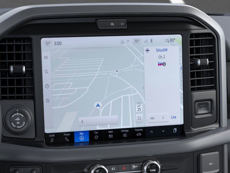 Equipped with Bed Utility Package (4 Pickup Box Tie-Down Plates, Bed Storage Boxes, LED Box Lighting, and Tailgate Step with Work Surface), Equipment Group 302A Mid (18" Painted Aluminum Wheels, 3.55 Axle Ratio, 360 Degree Camera, 400W Pro Power Onboard (cab & Bed), Adaptive Cruise Control with Stop and Go, AEB Oncoming, Auto-Dimming Rear-View Mirror, Black Platform Running Boards, Body-Color Door Handles, Chrome Front and Rear Bumpers, Cloth 40/20/40 Front Seat, Dual-Zone Electronic Automatic Temperature Control, Ford Co-Pilot360 Assist 2.0, Front Parking Sensors, Heated Front Seats, Intelligent Access with Push Button Start, Power Glass Heated Sideview Mirrors, Power-Sliding Rear Window, Radio: AM/FM Stereo with SiriusXM 360L, Remote Start System with Remote Tailgate Release, SYNC 4 with Enhanced Voice Recognition, Towing Technology, and Wrapped Steering Wheel), Ford Connectivity Package (1-Year Included), Ford Connectivity Package (one-Time Purchase - 7 Years), GVWR: 6,426 lbs Payload Package, GVWR: 7,100 lbs Payload Package, Internet access capable: 5G Modem - Ford Connectivity Package, Mobile Office Package (Console Worksurface and Partitioned Lockable Rear Storage), Tow/Haul Package (Integrated Trailer Brake Controller), 4-Wheel Disc Brakes, 6 Speakers, ABS brakes, Air Conditioning, Alloy wheels, AM/FM radio: SiriusXM with 360L, Auto High-beam Headlights, Black Tailgate Decal, BlueCruise (equipment + 1-Time Purchase), Brake assist, Bumpers: body-color, Cloth 40/Console/40 Front Seats, Compass, Delay-off headlights, Driver door bin, Driver vanity mirror, Dual front impact airbags, Dual front side impact airbags, Electronic Stability Control, Emergency communication system: SYNC 4 911 Assist, Front and Rear Molded Splash Guards, Front anti-roll bar, Front Center Armrest, Front fog lights, Front License Plate Bracket, Front reading lights, Front wheel independent suspension, Fully automatic headlights, Heated door mirrors, Illuminated entry, Low tire pressure warning, Occupant sensing airbag, Outside temperature display, Overhead airbag, Overhead console, Panic alarm, Passenger door bin, Passenger vanity mirror, Power door mirrors, Power steering, Power windows, Radio data system, Rear Parking Sensors, Rear reading lights, Rear step bumper, Rear window defroster, Remote keyless entry, Security system, Soft Folding Tonneau Pickup Box Cover, Speed control, Split folding rear seat, Steering wheel mounted audio controls, Tachometer, Telescoping steering wheel, Tilt steering wheel, Tough Bed Spray-in Bedliner, Traction control, Trip computer, Variably intermittent wipers, Wheel Well Liner, and Wheels: 17" Silver Painted Aluminum.