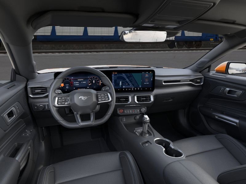 Equipped with Bronze Appearance Package (Sinister Bronze Front and Rear Pony Badges and Wheels: 19" x 8.5" Sinister Bronze Painted Aluminum), Ford Connectivity Package (one-Time Purchase - 7 Years), 1st Row Carpeted Black Floor Mats, 4-Wheel Disc Brakes, ABS brakes, Air Conditioning, Alloy wheels, AM/FM Stereo, Auto High-beam Headlights, Automatic temperature control, Brake assist, Bumpers: body-color, Compass, Delay-off headlights, Driver door bin, Driver vanity mirror, Dual front impact airbags, Dual front side impact airbags, Electronic Stability Control, Emergency communication system: 911 Assist, Exterior Parking Camera Rear, Four wheel independent suspension, Front anti-roll bar, Front Bucket Seats, Front Center Armrest, Front dual zone A/C, Front reading lights, Fully automatic headlights, Illuminated entry, Knee airbag, Leather Shift Knob, Low tire pressure warning, Occupant sensing airbag, Outside temperature display, Overhead airbag, Overhead console, Panic alarm, Passenger door bin, Passenger vanity mirror, Power door mirrors, Power steering, Power windows, Premium Floor Liners Front and Rear (with Carpet Mats), Radio data system, Rain sensing wipers, Rear anti-roll bar, Rear Parking Sensors, Rear window defroster, Remote keyless entry, Speed control, Speed-sensing steering, Speed-Sensitive Wipers, Split folding rear seat, Sport steering wheel, Steering wheel mounted audio controls, SYNC 4, Tachometer, Telescoping steering wheel, Tilt steering wheel, Traction control, Trip computer, Variably intermittent wipers, Voltmeter, Wedge Decklid Spoiler, and Wheels: 18" x 8" Painted Shadow Silver Cast Aluminum.