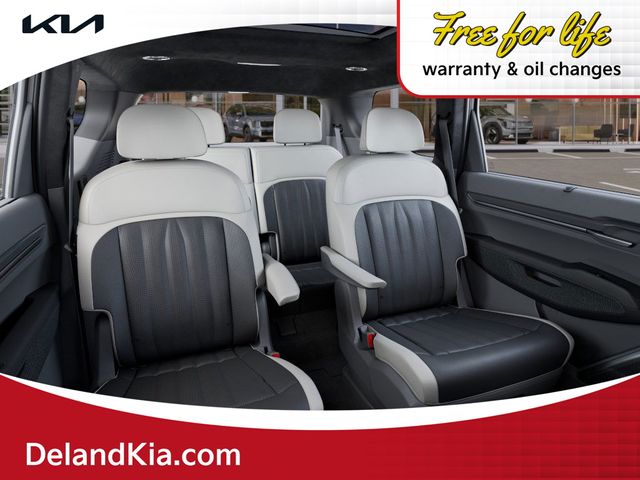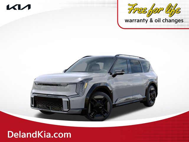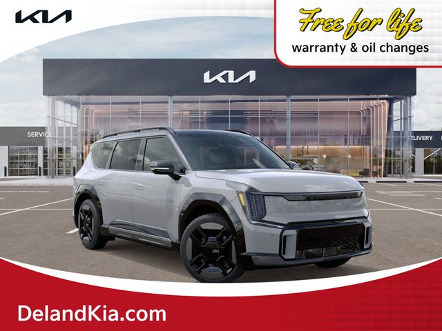 Elevate your driving experience with the captivating 2026 Kia EV9 GT-Line. This electric marvel boasts a striking Gray exterior, complemented by the bold Ebony Black Roof, creating a bold and sophisticated look that's sure to turn heads.