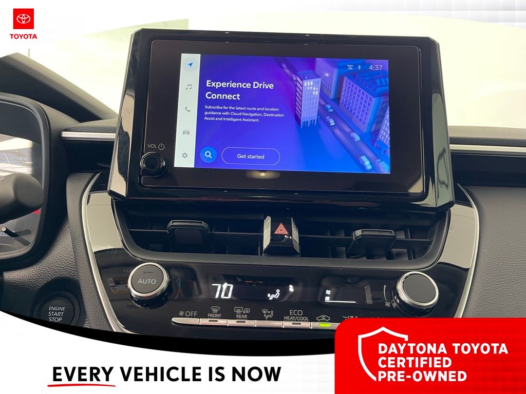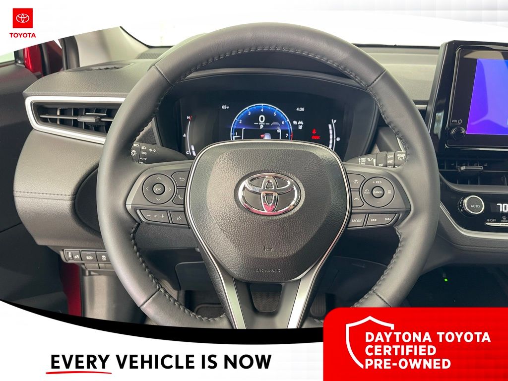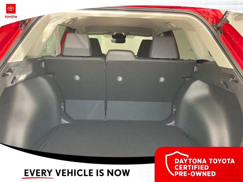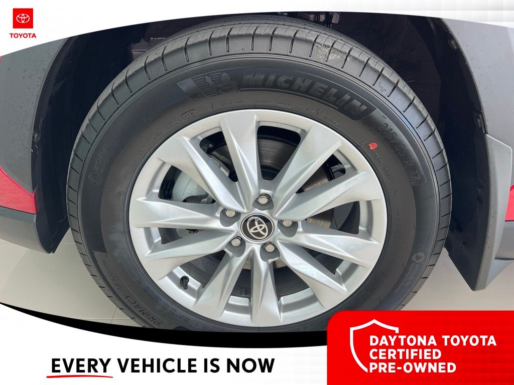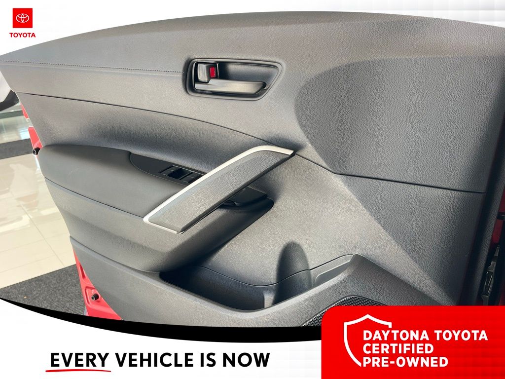 Equipped with 4-Wheel Disc Brakes, 6 Speakers, ABS brakes, Air Conditioning, Alloy wheels, AM/FM radio: SiriusXM, Auto High-beam Headlights, Automatic temperature control, Brake assist, Bumpers: body-color, Delay-off headlights, Driver door bin, Driver vanity mirror, Dual front impact airbags, Dual front side impact airbags, Electronic Stability Control, Emergency communication system: Safety Connect (10-year trial), Exterior Parking Camera Rear, Fabric Seat Trim, Frameless HomeLink Mirror, Front anti-roll bar, Front Bucket Seats, Front Center Armrest, Front reading lights, Front Seats, Front wheel independent suspension, Fully automatic headlights, Heated door mirrors, Illuminated entry, Knee airbag, Leather steering wheel, Low tire pressure warning, Mudguards, Occupant sensing airbag, Outside temperature display, Overhead airbag, Panic alarm, Passenger door bin, Passenger vanity mirror, Power door mirrors, Power steering, Power windows, Radio data system, Radio: 8" Toyota Audio Multimedia with 6 Speakers, Rear anti-roll bar, Rear side impact airbag, Rear window defroster, Rear window wiper, Remote keyless entry, Speed control, Split folding rear seat, Spoiler, Steering wheel mounted audio controls, Tachometer, Telescoping steering wheel, Tilt steering wheel, Traction control, Trip computer, Turn signal indicator mirrors, Variably intermittent wipers, and Wheels: 17" Silver-Painted Alloy. 31/33 City/Highway MPG