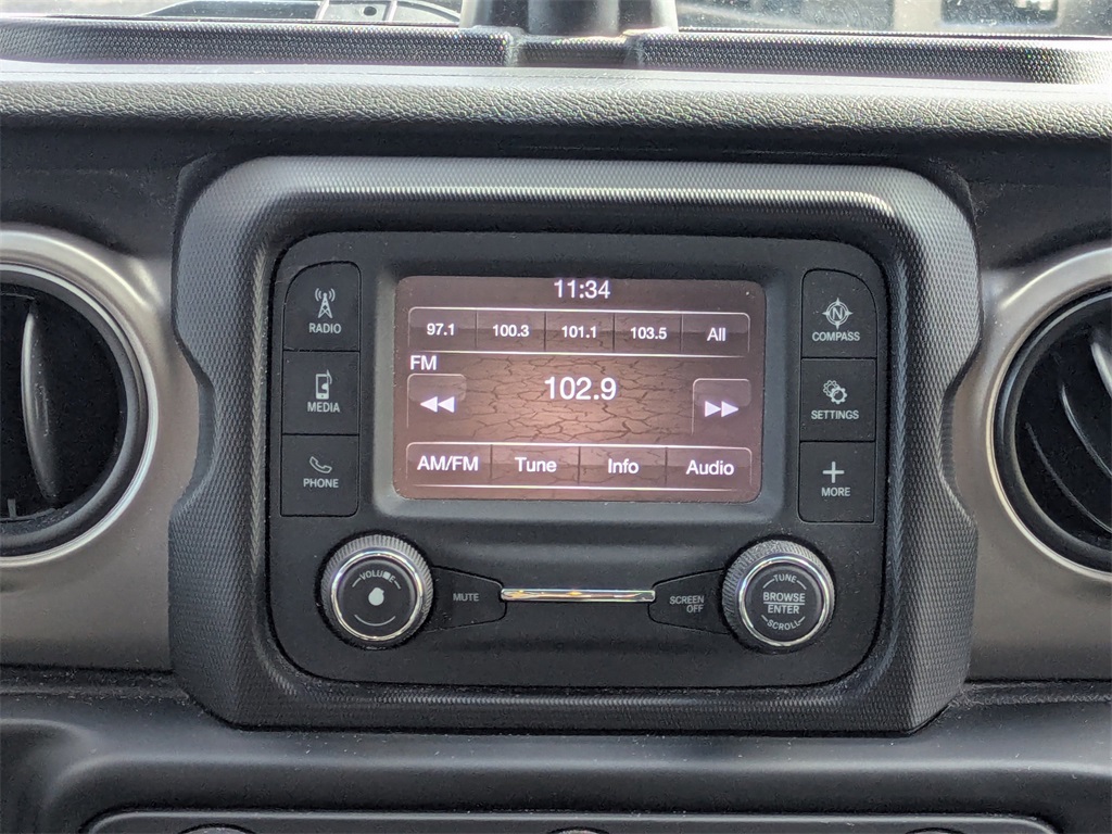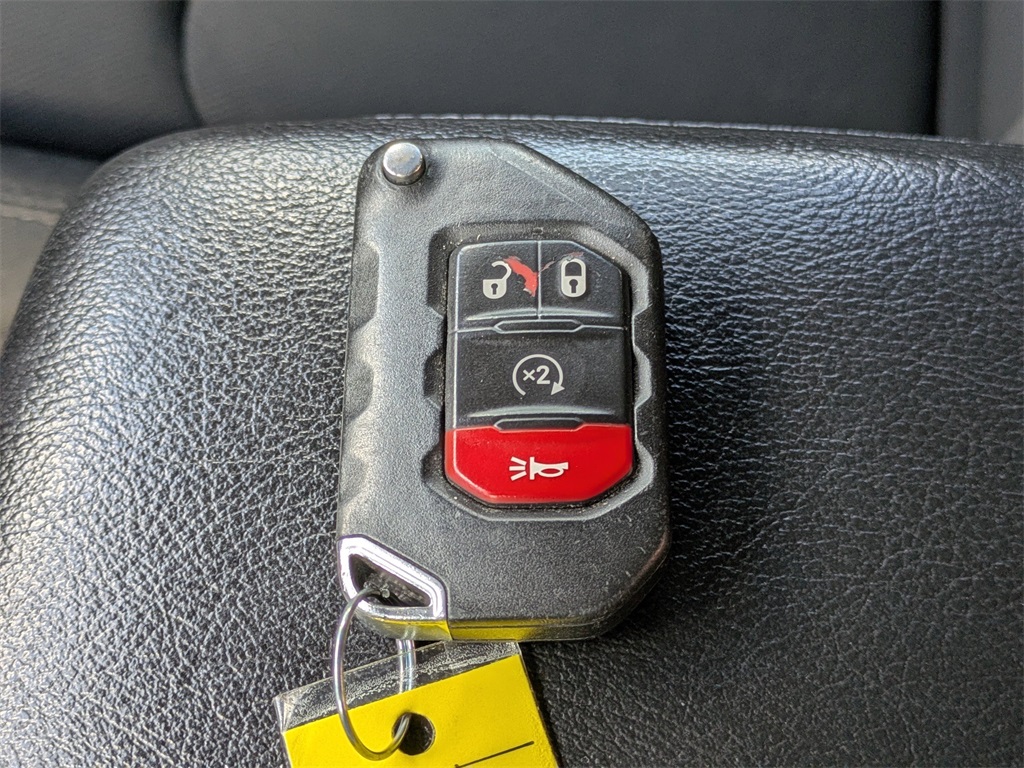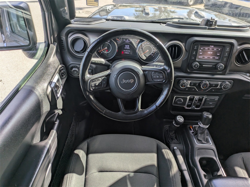 Equipped with Cold Weather Group (Heated Front Seats and Heated Steering Wheel), Convenience Group (Universal Garage Door Opener), Quick Order Package 22S Sport S (Automatic Headlamps, Deep Tint Sunscreen Windows, Front 1-Touch Down Power Windows, Leather Wrapped Steering Wheel, Power Heated Mirrors, Remote Keyless Entry, Security Alarm, Speed Sensitive Power Locks, Sun Visors w/Illuminated Vanity Mirrors, and Wheels: 17" x 7.5" Tech Silver Aluminum), Quick Order Package 23S Sport S, 3.45 Rear Axle Ratio, 4-Wheel Disc Brakes, 8 Speakers, ABS brakes, Air Conditioning, AM/FM radio, Aux Battery, Brake assist, Cloth Low-Back Bucket Seats, Compass, Delay-off headlights, Driver door bin, Driver vanity mirror, Dual front impact airbags, Dual front side impact airbags, Electronic Stability Control, Front anti-roll bar, Front Bucket Seats, Front Center Armrest w/Storage, Front fog lights, Front reading lights, Integrated roll-over protection, Integrated Voice Command w/Bluetooth, Jeep Trail Rated Kit, Low tire pressure warning, Non-Lock Fuel Cap w/o Discriminator, Normal Duty Suspension, Occupant sensing airbag, Outside temperature display, ParkView Rear Back-Up Camera, Passenger door bin, Passenger vanity mirror, Power steering, Radio data system, Radio: Uconnect 3 w/5" Display, Rear anti-roll bar, Rear reading lights, Side Steps (DISC), Speed control, Split folding rear seat, Steering wheel mounted audio controls, Stop-Start Dual Battery System, Tachometer, Telescoping steering wheel, Tilt steering wheel, Traction control, Trip computer, Variably intermittent wipers, and Wheels: 17" x 7.5" Black Steel Styled.