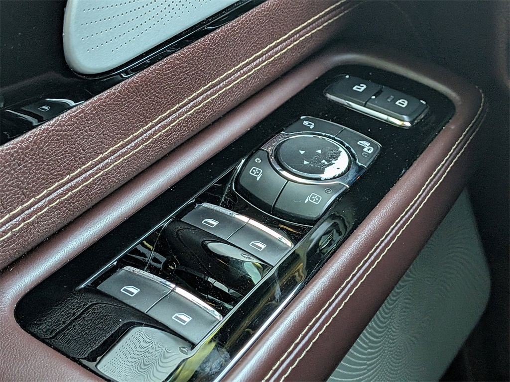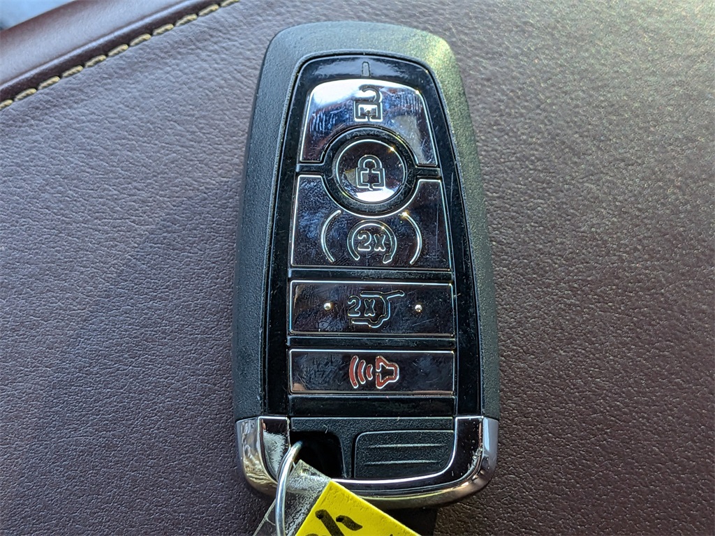 Equipped with Destination Theme (Mahogany Khaya Appliques w/Etched Logo, Mahogany Red Floor Carpet/Mats, Mahogany Red Headliner, and Mahogany Red Leather-Wrapped Interior), Equipment Group 800A, 28 Speakers, 3.58 Axle Ratio, 3rd row seats: split-bench, 4-Wheel Disc Brakes, ABS brakes, Adaptive suspension, Air Conditioning, Alloy wheels, AM/FM radio: SiriusXM, Audio memory, Auto High-beam Headlights, Auto-dimming door mirrors, Auto-dimming Rear-View mirror, Automatic temperature control, Brake assist, Bumpers: body-color, Compass, Delay-off headlights, Door auto-latch, Driver door bin, Driver vanity mirror, Dual front impact airbags, Dual front side impact airbags, Electronic Stability Control, Emergency communication system: SYNC 3 911 Assist, Four wheel independent suspension, Front anti-roll bar, Front Bucket Seats, Front Center Armrest, Front dual zone A/C, Front fog lights, Front reading lights, Fully automatic headlights, Garage door transmitter, Head restraints memory, Heads-Up Display, Heated door mirrors, Heated front seats, Heated rear seats, Heated steering wheel, HVAC memory, Illuminated entry, Knee airbag, Low tire pressure warning, Memory seat, Navigation System, Occupant sensing airbag, Outside temperature display, Overhead airbag, Overhead console, Panic alarm, Passenger door bin, Passenger vanity mirror, Power adjustable front head restraints, Power door mirrors, Power driver seat, Power Liftgate, Power moonroof, Power passenger seat, Power steering, Power windows, Radio data system, Radio: Revel Ultima 3D Audio System w/28 Speakers, Rain sensing wipers, Rear air conditioning, Rear anti-roll bar, Rear audio controls, Rear dual zone A/C, Rear reading lights, Rear window defroster, Rear window wiper, Remote keyless entry, Savannah Leather Heated/Ventilated Seats (76E), Security system, SiriusXM Radio, Speed control, Speed-Sensitive Wipers, Split folding rear seat, Spoiler, Steering wheel memory, Steering wheel mounted A/C controls, Steering wheel mounted audio controls, SYNC 3 Communication & Entertainment System, Tachometer, Telescoping steering wheel, Tilt steering wheel, Traction control, Trip computer, Turn signal indicator mirrors, Variably intermittent wipers, Ventilated front seats, Ventilated rear seats, and Wheels: 22" Ultra Bright Machined Aluminum.
