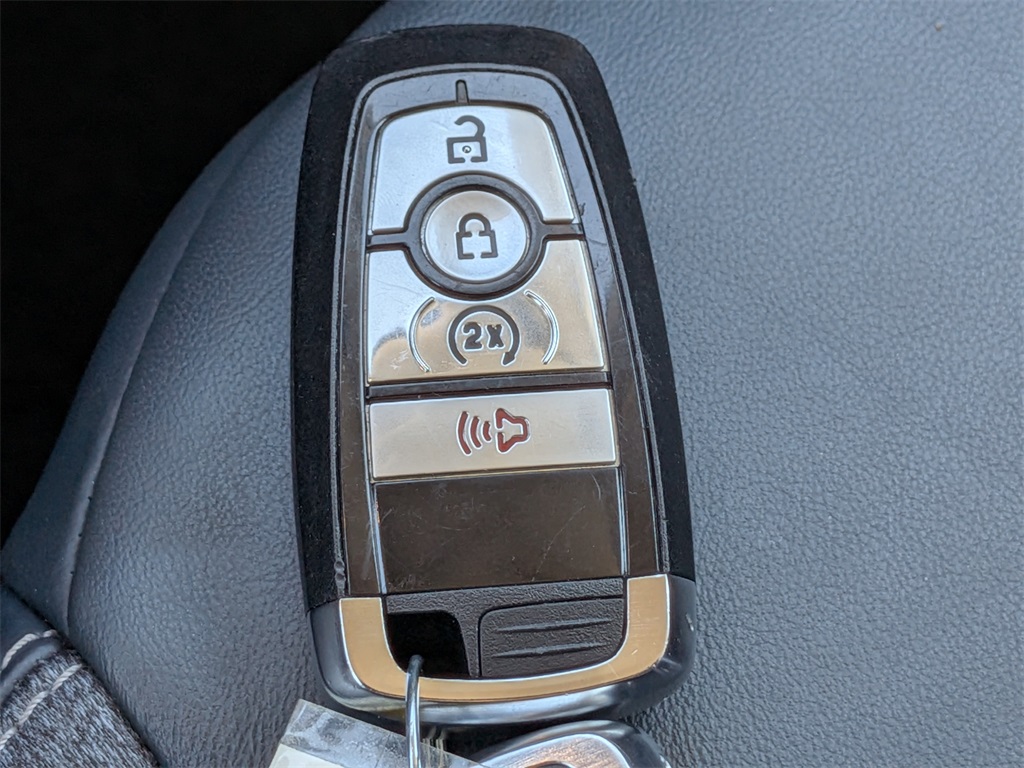 Equipped with Class II Trailer Tow Package w/Trailer Sway Control, Equipment Group 300A, Ford Co-Pilot360 Assist+ (Evasive Steering Assist, Intelligent Adaptive Cruise Control w/Stop & Go, and Voice-Activated Touchscreen Navigation System), Tech Package (HD Radio, Universal Garage Door Opener (UGDO), and Wireless Charging Pad), Ford Gold Certified Certified, 3.80 Axle Ratio, 4-Wheel Disc Brakes, 4G LTE Wi-Fi Hotspot Credit, 6 Speakers, ABS brakes, Air Conditioning, Alloy wheels, AM/FM radio: SiriusXM, AM/FM Stereo, Auto High-beam Headlights, Auto-dimming Rear-View mirror, Automatic temperature control, Brake assist, Cargo Management System, Compass, Delay-off headlights, Driver door bin, Driver vanity mirror, Dual front impact airbags, Dual front side impact airbags, Electronic Stability Control, Emergency communication system: SYNC 3 911 Assist, Four wheel independent suspension, Front & Rear Floor Liners, Front anti-roll bar, Front Bucket Seats, Front Center Armrest, Front dual zone A/C, Front fog lights, Front License Plate Bracket, Front reading lights, Fully automatic headlights, Heated door mirrors, Heated front seats, Heated steering wheel, Illuminated entry, Knee airbag, Leather Trimmed Heated Sport Contour Bucket Seats, Low tire pressure warning, Memory seat, Occupant sensing airbag, Outside temperature display, Overhead airbag, Overhead console, Painted Shadow Black Roof, Panic alarm, Passenger door bin, Passenger vanity mirror, Power door mirrors, Power driver seat, Power Moonroof, Power passenger seat, Power steering, Power windows, Radio data system, Rain sensing wipers, Rear anti-roll bar, Rear Parking Sensors, Rear reading lights, Rear seat center armrest, Rear window defroster, Rear window wiper, Remote keyless entry, Roof-Rail Crossbars II (DIO), Security system, SiriusXM, Speed control, Speed-sensing steering, Speed-Sensitive Wipers, Split folding rear seat, Steering wheel mounted audio controls, SYNC 3 Communications & Entertainment System, SYNC 3/Apple CarPlay/Android Auto, Tachometer, Telescoping steering wheel, Tilt steering wheel, Traction control, Trip computer, Variably intermittent wipers, and Wheels: 18" Ebony Black-Painted Aluminum.