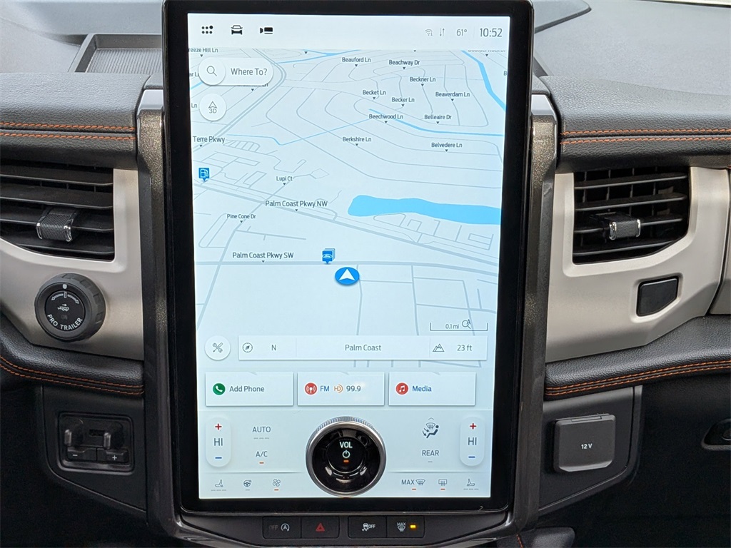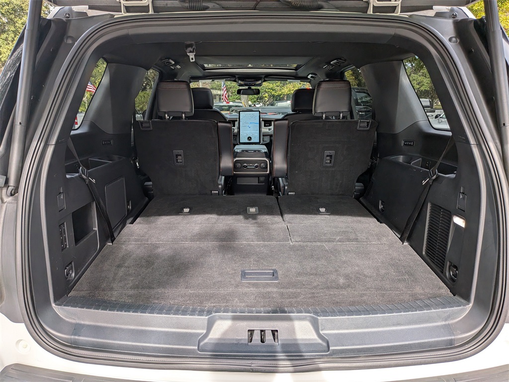 Equipped with Equipment Group 501A High Package (15.5" LCD Capacitive Touchscreen, 2nd Row Leather Trimmed Pwr-Folding Captain's Chairs, 2nd Row Power Windows, Ambient Lighting, Front & Rear Upgraded Carpet Floor Mats, Heated & Ventilated Leather Front Captain's Chairs, Heated Steering Wheel, Instrument Panel Cluster, Panoramic Vista Roof, Power-Folding Sideview Mirrors w/Autofold, Radio: B&O Sound System by Bang & Olufsen, Rain-Sensing Wipers (Front Only), SiriusXM w/360L, SYNC 4 w/Enhanced Voice Recognition, and Vinyl Center Console), Heavy-Duty Trailer Tow Package (Integrated Trailer Brake Controller and Pro Trailer Backup Assist), 4WD, 360-Degree Camera w/Split View, 3rd row seats: split-bench, 4-Wheel Disc Brakes, 6 Speakers, ABS brakes, Adjustable pedals, Air Conditioning, Alloy wheels, AM/FM radio: SiriusXM with 360L, Auto High-beam Headlights, Auto-dimming door mirrors, Auto-dimming Rear-View mirror, Automatic temperature control, Brake assist, Bumpers: body-color, Compass, Connected Built-In Navigation, ControlTrac w/3.73 Axle Ratio, Delay-off headlights, Driver door bin, Driver vanity mirror, Dual front impact airbags, Dual front side impact airbags, Electronic Stability Control, Emergency communication system: SYNC 4 911 Assist, Exterior Parking Camera Rear, Four wheel independent suspension, Front anti-roll bar, Front Bucket Seats, Front Center Armrest, Front dual zone A/C, Front fog lights, Front reading lights, Fully automatic headlights, Garage door transmitter, Hands-Free Foot-Activated Liftgate Removal (DISC), Heated & Vent Cloth/Vinyl Front Captain's Chairs, Heated door mirrors, Heated front seats, Heated steering wheel, Illuminated entry, Leather steering wheel, Low tire pressure warning, Memory seat, Navigation system: Connected Navigation, Occupant sensing airbag, Outside temperature display, Overhead airbag, Overhead console, Panic alarm, Passenger door bin, Passenger vanity mirror, Pedal memory, Power door mirrors, Power driver seat, Power Liftgate, Power passenger seat, Power steering, Power windows, Radio data system, Radio: AM/FM Stereo w/MP3 Capable, Rear air conditioning, Rear anti-roll bar, Rear reading lights, Rear window defroster, Rear window wiper, Reclining 3rd row seat, Remote keyless entry, Reverse Brake Assist, Second Row Power Windows Removal, Security system, Speed control, Speed-sensing steering, Speed-Sensitive Wipers, Split folding rear seat, Spoiler, Steering wheel memory, Steering wheel mounted audio controls, Tachometer, Telescoping steering wheel, Tilt steering wheel, Traction control, Trip computer, Turn signal indicator mirrors, Variably intermittent wipers, Ventilated front seats, Voltmeter, and Wheels: 18" Ebony-Painted.
