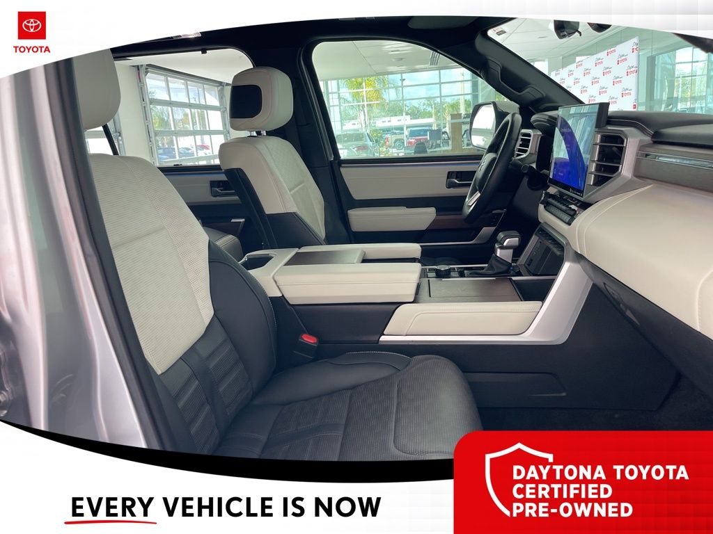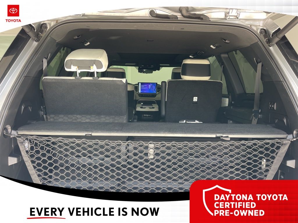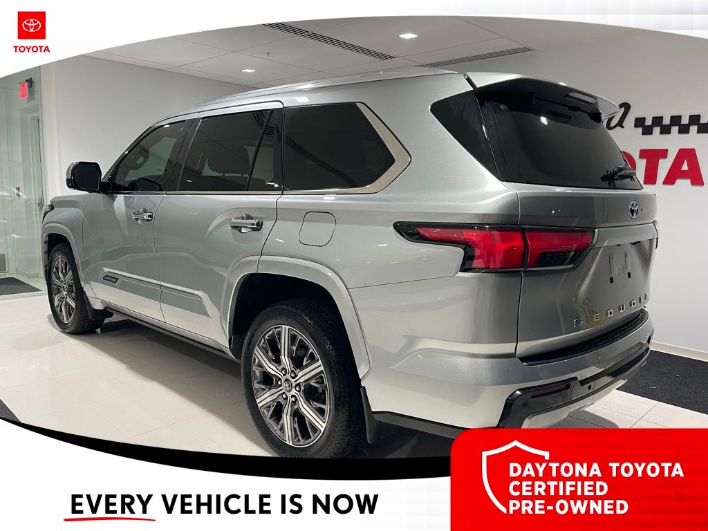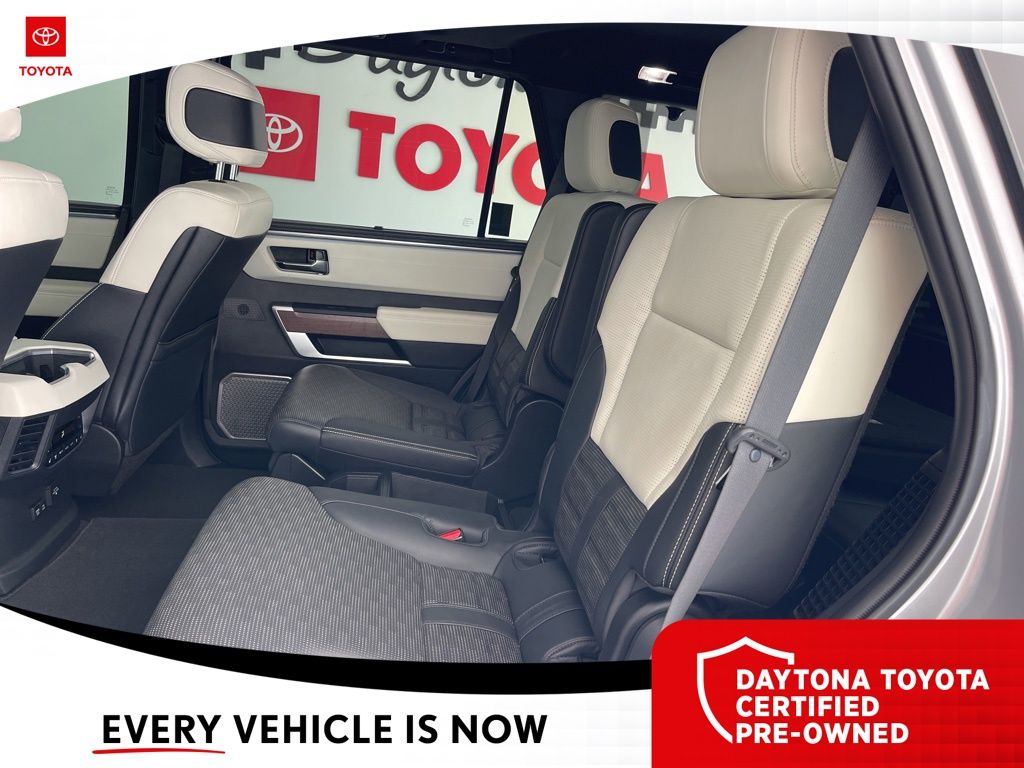 The Sequoia's striking Silver exterior and premium features, including a JBL Premium Audio System, Power Moonroof, and Automatic Power Extending Running Boards, create an unparalleled driving experience. Step inside the spacious and well-appointed cabin, where you'll be surrounded by luxurious Semi-Aniline Leather Seat Trim, Heated and Ventilated Front Seats, and a Rear-View Mirror with Auto-Dimming functionality.