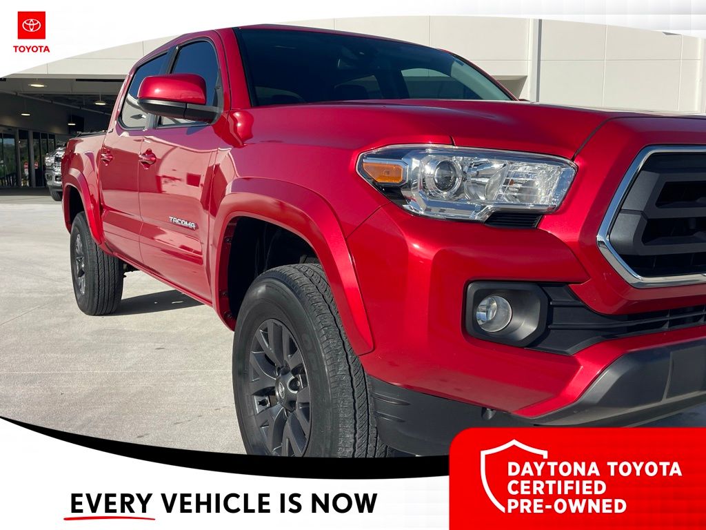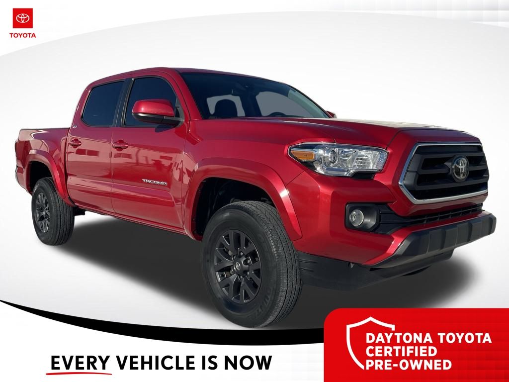 *Recent Arrival! CARFAX One-Owner. Barcelona Red Metallic 2023 Toyota Tacoma SR5 Double Cab V6