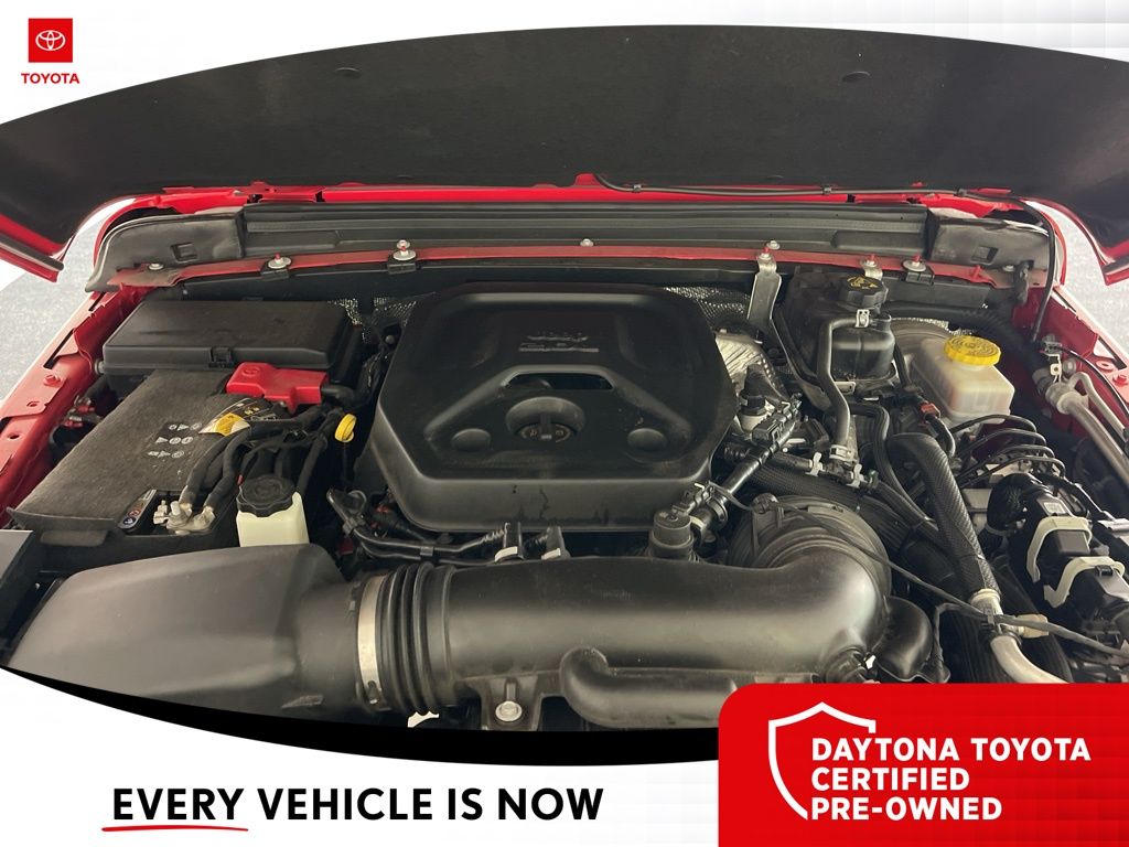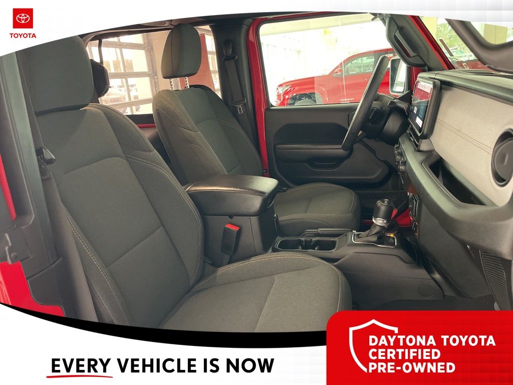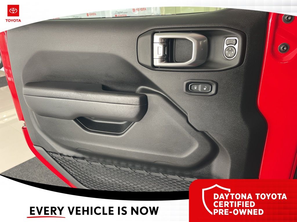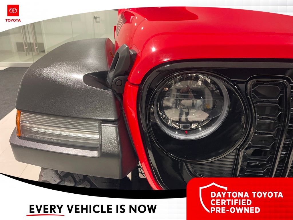 The exterior of the Wrangler Willys exudes a bold, rugged style with its Firecracker Red Clearcoat paint, Black Grille, and Injection Molded Black Rear Bumper. The interior is equally impressive, with premium wrapped steering wheel, sun visors with illuminated vanity mirrors, and a 12.3-inch Uconnect 5 display that seamlessly integrates your smartphone via Apple CarPlay and Android Auto.